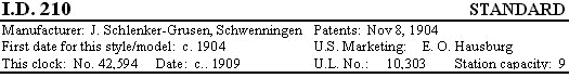 I.D. 11, but is fully identified by these marks. It was the third portable clock listed by Underwriters' Laboratories, Inc., and was sold in the New York area in respectable